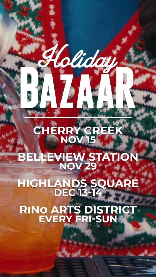 Known for reimagining & revitalizing urban locations into thriving pop-up events that are sure to please any shopper, foodie, or craft beverage connoisseur. Denver BAZAAR blends the best elements of fashion, food, and drinks - creating a unique shopping & sipping experience that locals know and love.